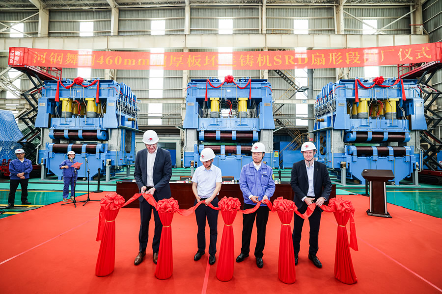 4月29日上午,在寶菱重工連鑄裝配中心,隆重舉行了“河鋼舞鋼460mm超厚板坯連鑄機(jī)SRD扇形段出廠儀式”。河鋼集團(tuán)舞鋼公司、寶菱重工、普銳特中國(guó)、普銳特奧地利等四方的主要領(lǐng)導(dǎo)和員工代表出席儀式,共同見(jiàn)證?了全球領(lǐng)先的460mm超厚板坯連鑄機(jī)SRD扇形段?正式出廠的榮耀時(shí)刻。此次出廠儀式,不僅標(biāo)志著460mm超厚板坯連鑄機(jī)SRD扇形段的圓滿交付,更彰顯了河鋼集團(tuán)舞鋼公司、普銳特、寶菱重工在超厚板坯